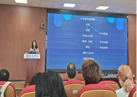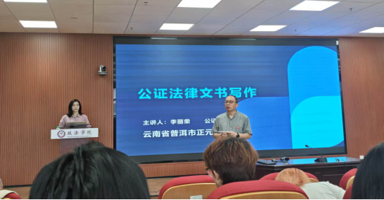 为进一步提升学生的法律文书写作能力,深化对法律实务工作的认知,2026年4月27日,我院特别邀请了来自云南省普洱市正元公证处的李丽荣公证员,开展“公证法律文书写作”的专题讲座。李丽荣公证员从公证工作基本情况出发,结合真实案例,系统讲解了公证文书种类、格式结构及写作中的关键注意事项。
