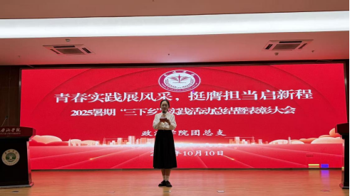 为深化实践育人成效,充分发挥暑期“三下乡”社会实践活动示范引领作用,2025年10月10日,我院团总支举行了“青春实践展风采,挺膺担当启新程”——2025年暑期“三下乡”社会实践总结表彰大会。学院党总支书记金晶、副书记姚俊颖、实践队指导教师代表及200余名学生代表齐聚一堂,共同回顾这个夏天青年学子们深入基层、服务社会的足迹,见证实践成果。